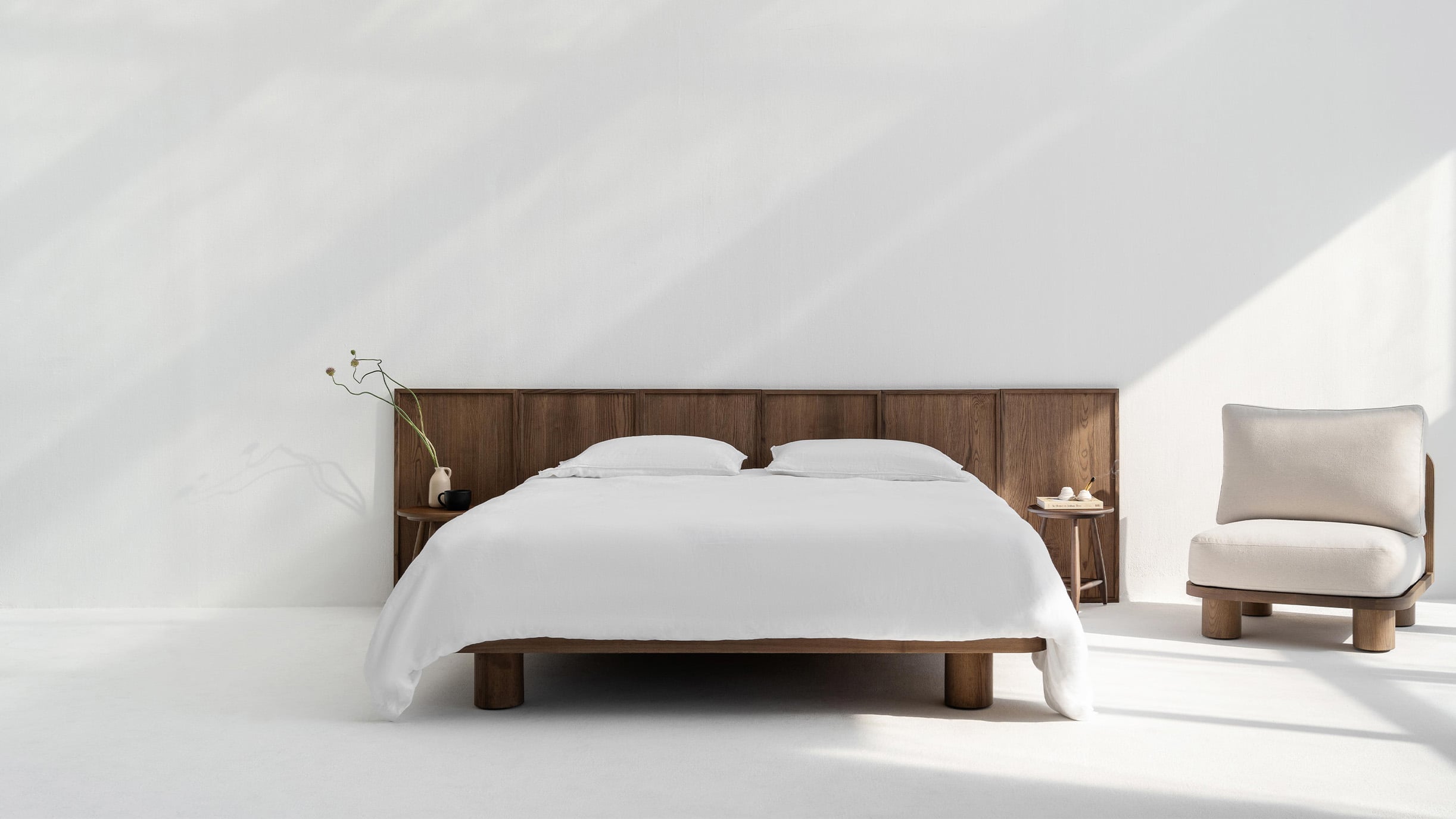 يُعد هيكل السرير «ماجو» الأساس الطبيعي البسيط الذي يستحقه لوح رأس السرير «تولوم». وقد صُنع بالكامل من خشب الدردار الصلب — بدون قشرة خشبية أو أي اختصارات — ويتميز بأرجل «ماجو» السميكة المميزة، والمنحنيات الناعمة، والخطوط البسيطة التي تتيح لحبيبات الخشب وطابعه الطبيعي أن يتحدثا عن نفسيهما.